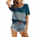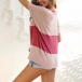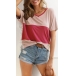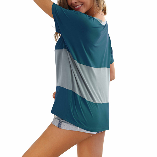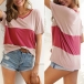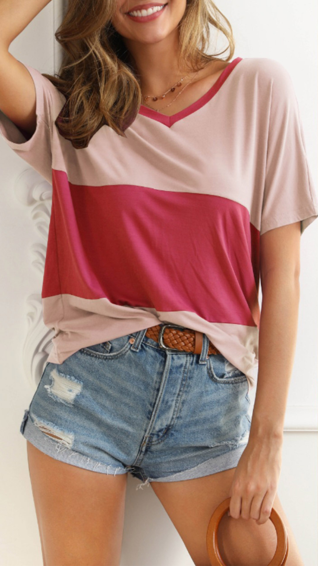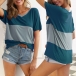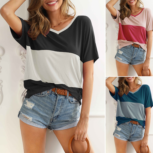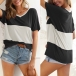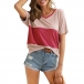 Fashion COntrast Color Short Sleeve V-neck Loose T-shirt