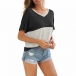 Don't like too simple and dull t-shirt? Then you can have a try this piece. Contrast color style,finished with short sleeve,v-neck and a loose silhouette,this piece not only can give you a comfortable day,but also can be matched with different style bottoms. Add one piece to your summer wardrobe ensemble!