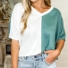 This piece that combines of cozy,casual and stylish vibes is just the thing you need on your casual days. Contrast color element design breaks the simple and dull design style. Finished with short sleeve,v-neck and a loose silhouette,this piece can keep the comfy as well as offer you different matching styles.