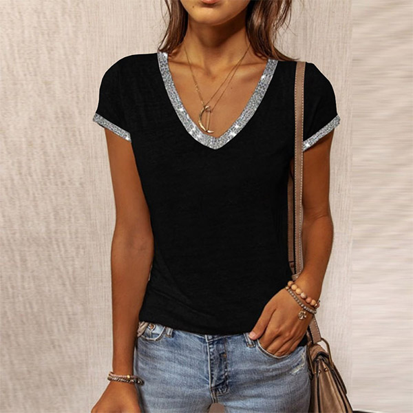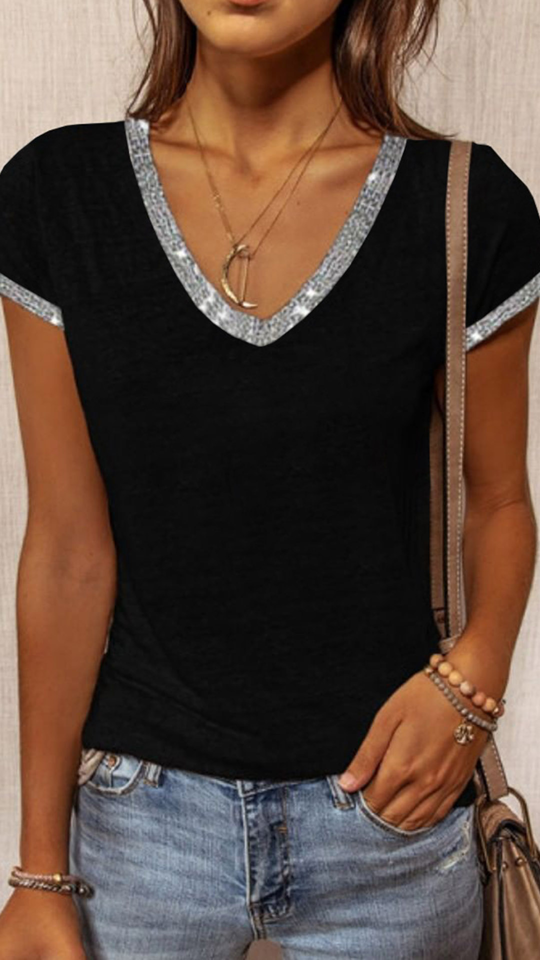 Fashion Contrast Color Short Sleeve V-neck SLim Fit T-shirt