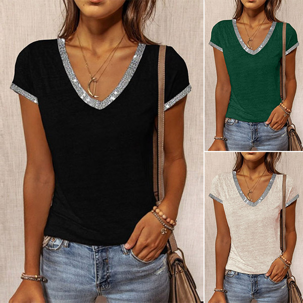 When it comes to a casual,relaxed yet stylish daily style,you can just have a look at this t-shirt. Contrast color design at the cuff and neckline part breaks the simple and dull design style. Crafted from soft and breathable fabric,with short sleeve and v-neck design,this t-shirt can keep the comfy as well as offer you different matching styles.