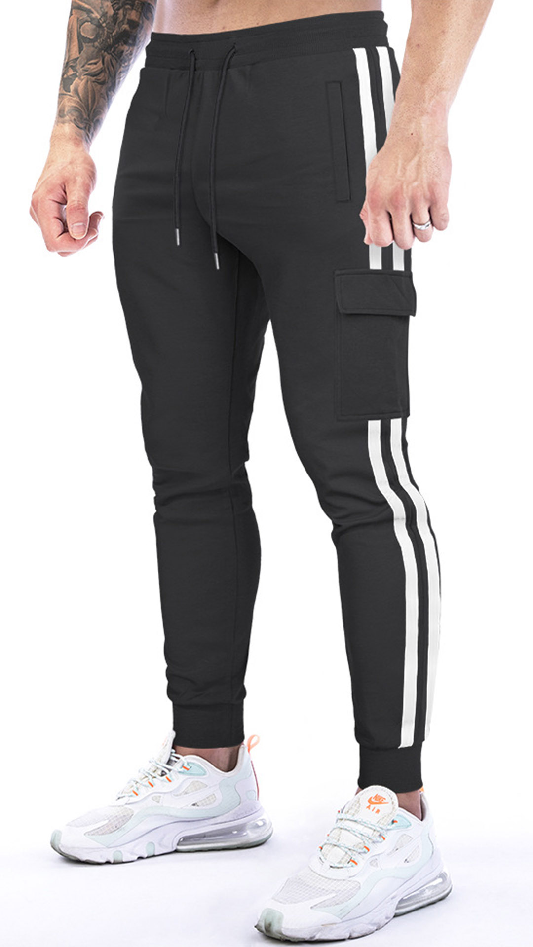Fashion Contrast Color Side Stripe Printed Drawstring Sweatpants for Men