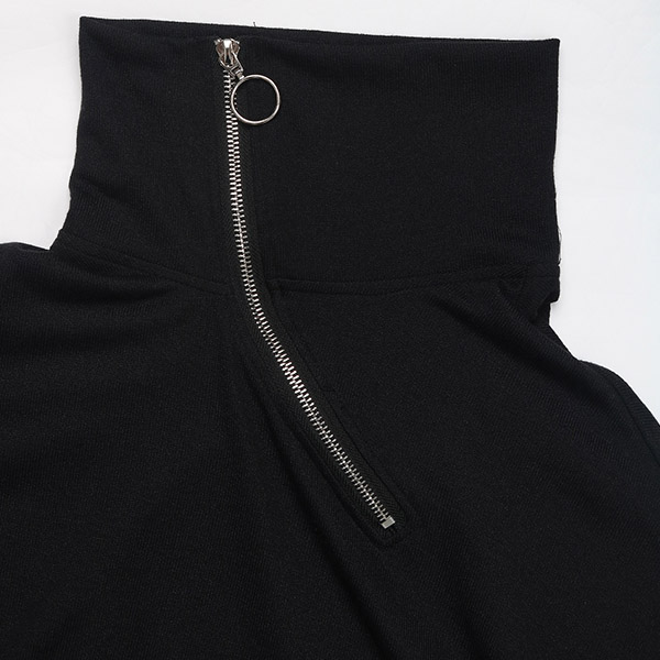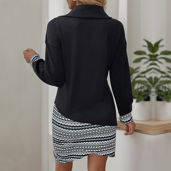This dress features a unique contrast color front printed along the cuff and irregular hemline. The slant zipper collar design creates a modern and fashion-forward look that is perfect for daily wear.