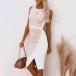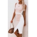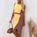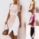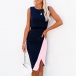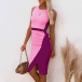 Fashion Contrast Color Sleeveless Round Neck Slit Hem High Waist Slim Fit Dress