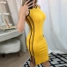 Fashion Contrast Color Sleeveless Round Neck Slit Hem Slim Fit Dress