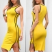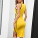 The bright yellow tone can better highlight your fair skin,while the fit silhouette design will showcase your perfect curve. Finished with sleeveless,round neck and slit hem,this dress knows how to make you look beautiful and feminine.