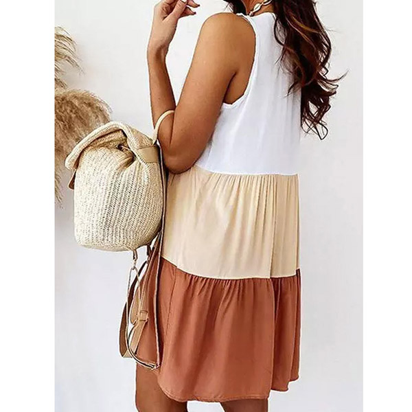 Fashion Contrast Color Sleeveless V-neck Loose Dress