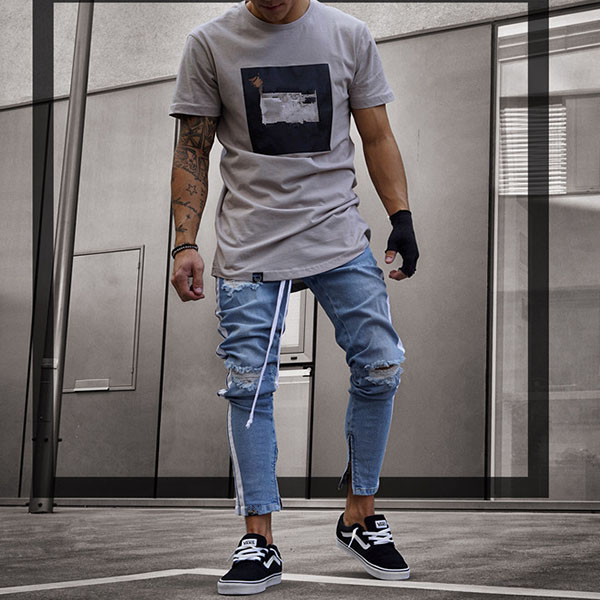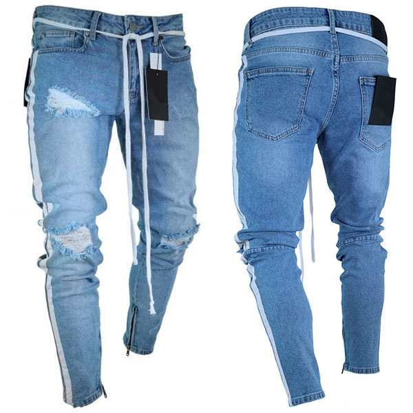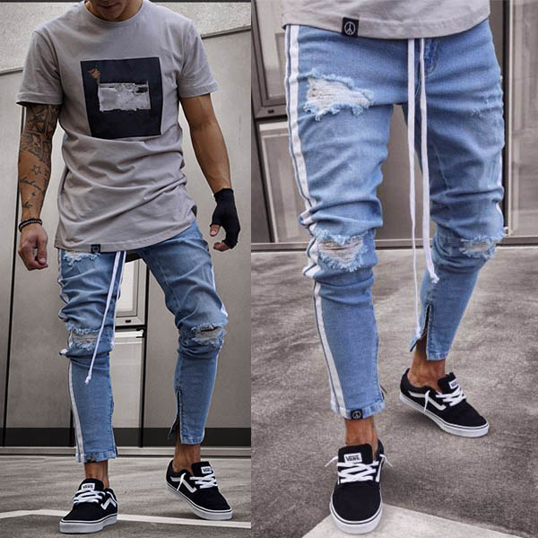 Showcase your chic and stylish taste with this jeans. The contrast color and ripped design make this