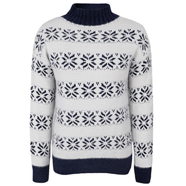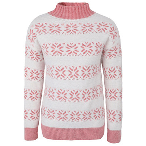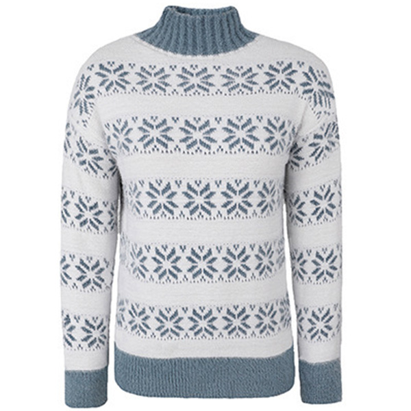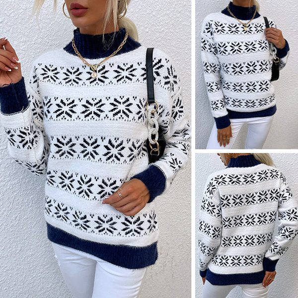 Fashion Contrast Color Snowflake Mock Neck Long Sleeve Knitted Sweater for Christmas