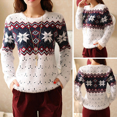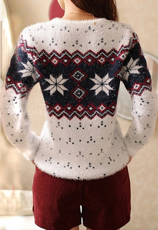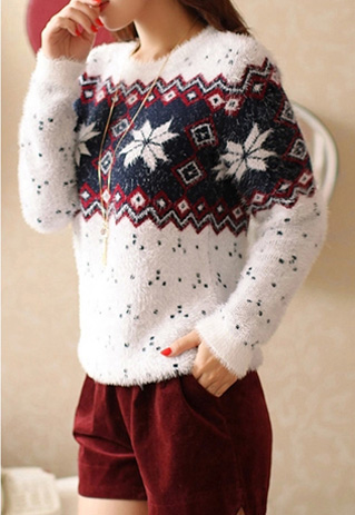 with snowflake pattern,sweet and romantic. Fashion round neck and long sleeve design. A perfect partner for your fashion dress up.