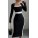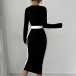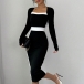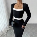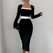 Fashion Contrast Color Square Neck Long Sleeve Bodycon Dress