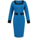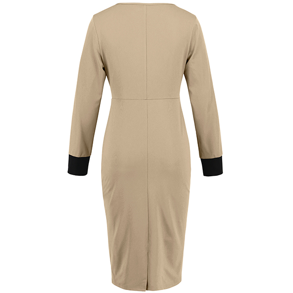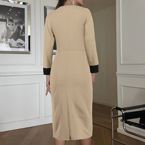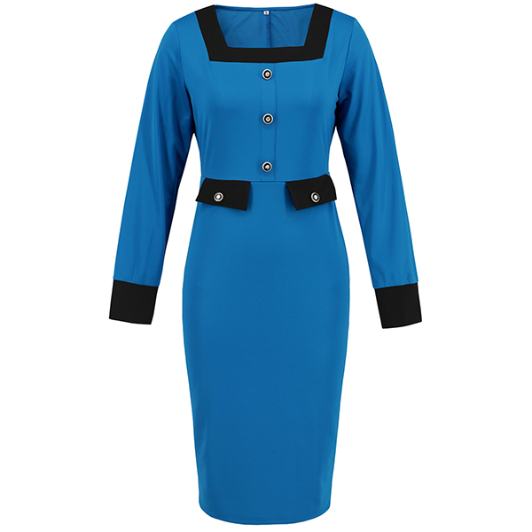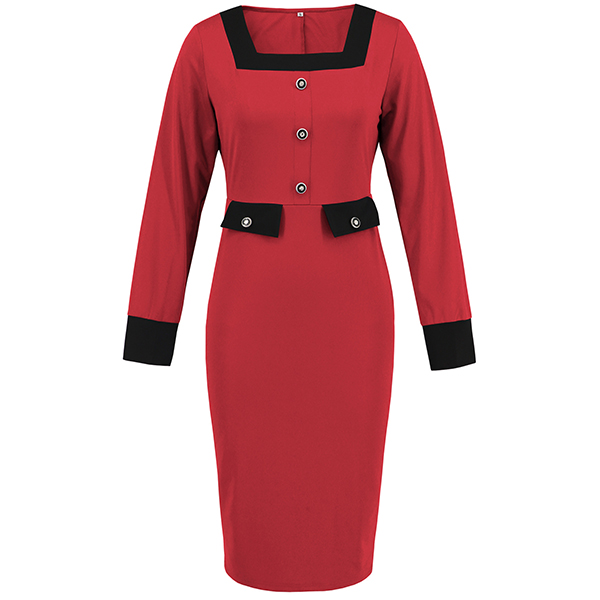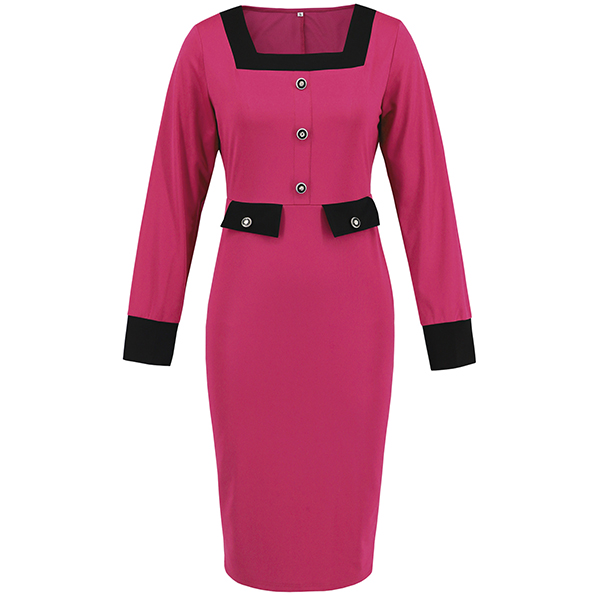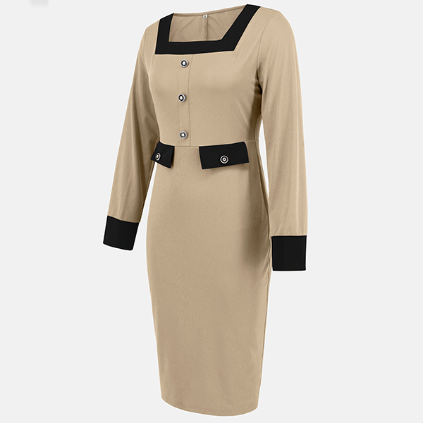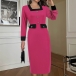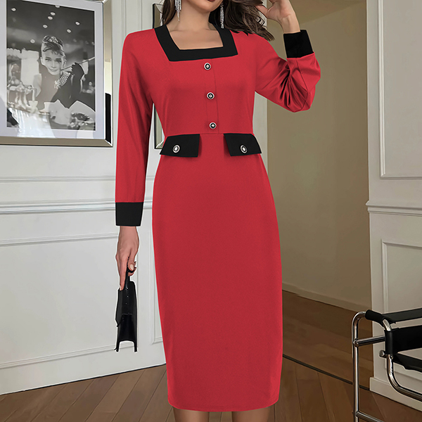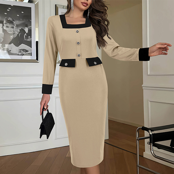 Fashion Contrast Color Square Neck Long Sleeve Suit Dress