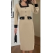 This fashionable suit dress features a contrast color design, square neckline, and long sleeves, creating a stylish and sophisticated look. This suit dress is perfect for creating a polished and fashion-forward outfit.