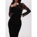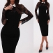 Fashion Contrast Color Stand Collar Lace Spliced Long Sleeve Bodycon Dress