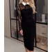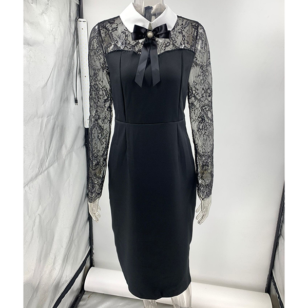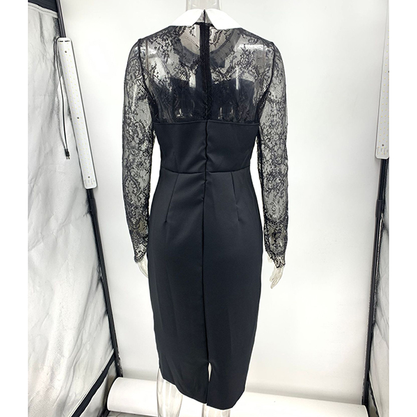 This dress features contemporary fashion styling with dynamic contrast color construction and elegant stand collar design for modern refined sophistication. And the lace splicing adds delicate textural dimension and feminine refinement throughout the fitted silhouette. Perfect for daily wear.