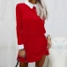 Fashion Contrast Color Stand Collar Long Sleeve Mini Dress