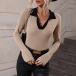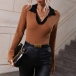 This fashionable shirt is perfect for daily wear. The contrast color stand collar, V-neck and long trumpet sleeves make this shirt stand out from the rest. The shirt is made of a high quality fabric that is sure to last.