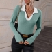 Fashion Contrast Color Stand Collar Long Trumpet Sleeve Shirt