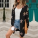 Designed with long sleeves, this cardigan provides warmth and coverage. The star pattern adds a playful and whimsical element to the cardigan. The knit fabric is soft and cozy, making it perfect for colder days or seasons.