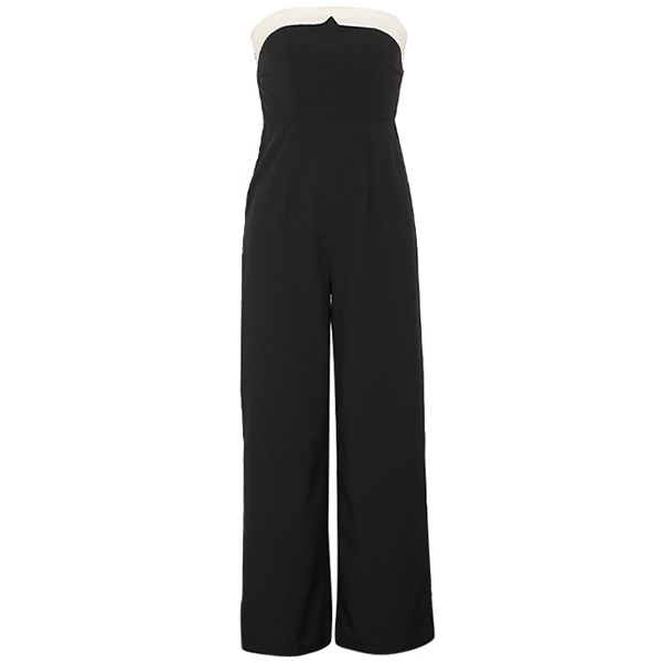 Fashion Contrast Color Strapless Straight-cut Jumpsuit