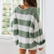 Ce pull arbore un col ras-du-cou, des manches longues, des rayures aux couleurs contrastées et un tricot confortable pour un look tendance et chic.