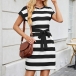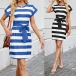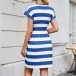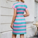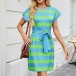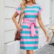 Fashion Contrast Color Stripe Crew Neck Short Sleeve Self-tie Mini Dress