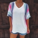 For moments when you're short of time for wardrobe mix and match, settle for easy-to-wear t-shirt such as this creation. The contrast color stripe element design will make this piece look more stylish and attractive. Finished with short sleeve,v-neck and a loose silhouette,this piece can keep the comfy as well as exude your style and personality.