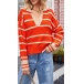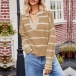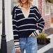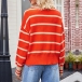 Fashion Contrast Color Stripe Long Sleeve V-neck Knitted Sweater