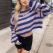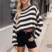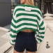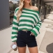 This knitted sweater features a contrast color stripe print and batwing sleeves, creating a stylish and cozy look. Wanna have a try?