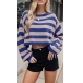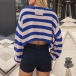 Fashion Contrast Color Stripe Printed Batwing Sleeve Knitted Sweater