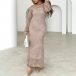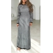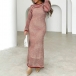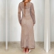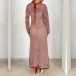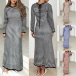 Fashion Contrast Color Stripe Printed Crew Neck Long Sleeve Knitted Maxi Dress