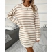 Fashion Contrast Color Stripe Printed Crew Neck Long Sleeve Sweater Dress