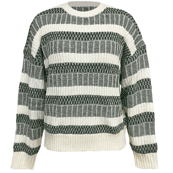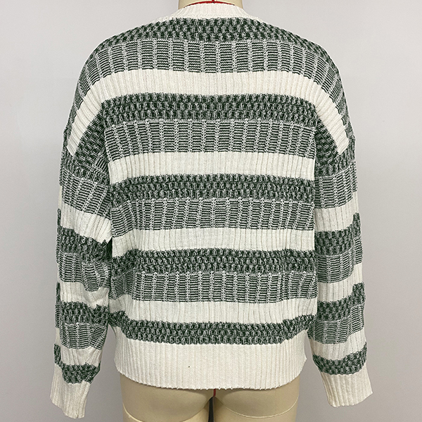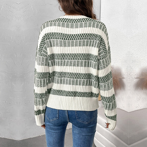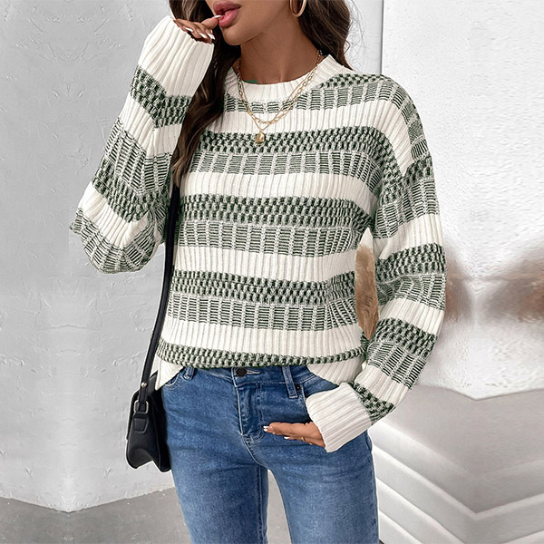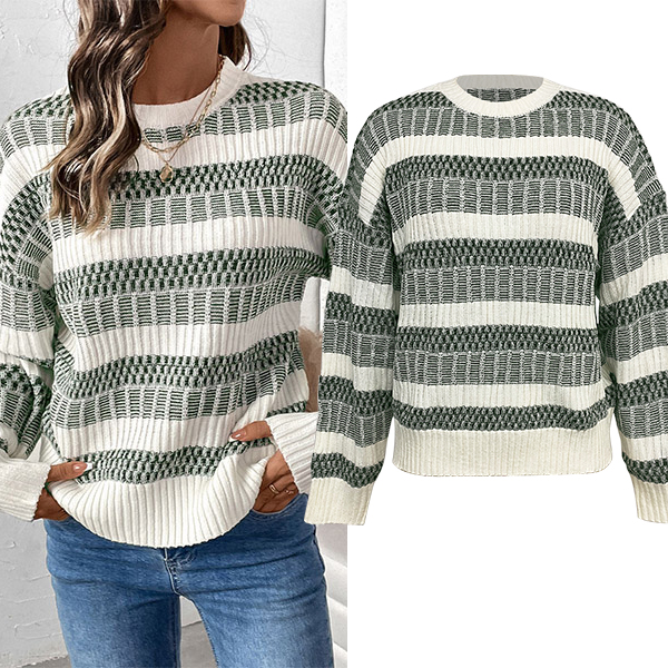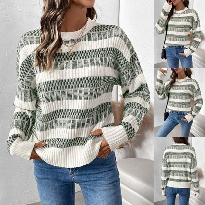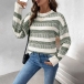 Fashion Contrast Color Stripe Printed Crew Neck Long Sleeve Sweater