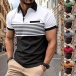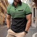 Fashion Contrast Color Stripe Printed Polo-neck Short Sleeve Shirt for Men