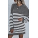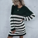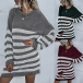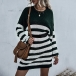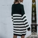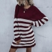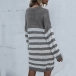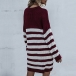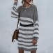 Fashion Contrast Color Stripe Printed Round Neck Long Sleeve Knitted Sweater Dress