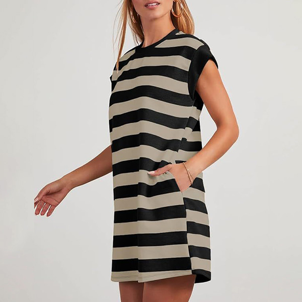 Fashion Contrast Color Stripe Printed Sleeveless Dress