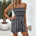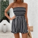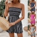 Fashion Contrast Color Stripe Printed Strapless Romper