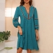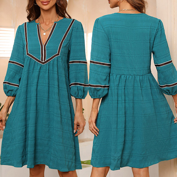 Fashion Contrast Color Stripe Printed V-neck 3/4 Sleeve Dress