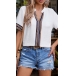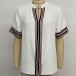 Fashion Contrast Color Stripe Printed V-neck Short Sleeve White Shirt
