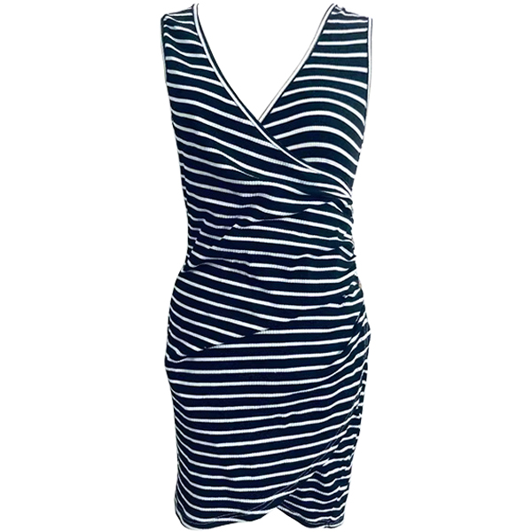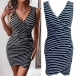 Fashion Contrast Color Stripe Printed V-neck Sleeveless Irregular Hemline Bodycon Dress
