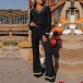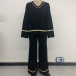 This is a stylish and contemporary ensemble that combines a striped V-neck shirt with coordinating wide-leg pants for a modern and chic look. Wanna have one?