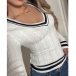 Fashion Contrast Color Stripe V-neck Long Sleeve Cable Knitted Sweater