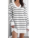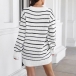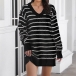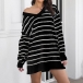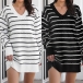 Fashion Contrast Color Stripe V-neck Long Sleeve Knitted Sweater Dress