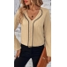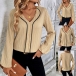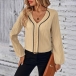Fashion Contrast Color Stripe V-neck Long Sleeve Shirt