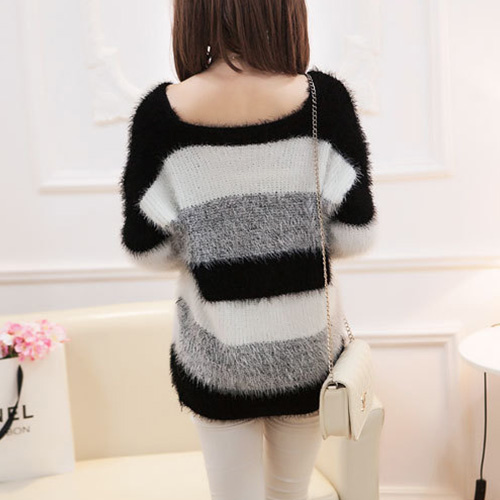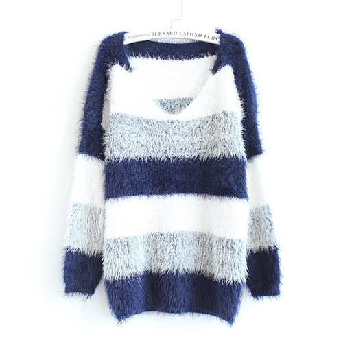 I promise you will be attracted by this knitting sweater at your first glance. It features contrast color stripes design,sexy v-neck and long sleeve design. A must partner in cold days.