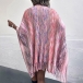 Fashion Contrast Color Tassle Pom-pom Irregular Hemline Cape Cardigan