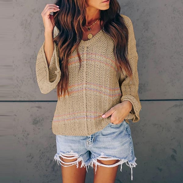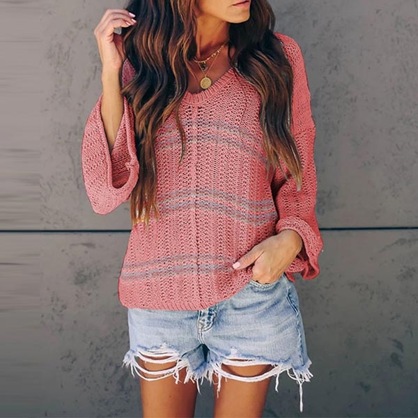 contrast color,trumpet sleeve and v-neck design make this piece so stylish and popular. Wanna matching