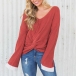 Hey,girls,you can have a try this wonderful top to boost your fashion level. Contrast color style,the v-neck and trumpet sleeve design can exudes your feminine appeal,while the twisted hem design will make this piece look more distinctive and attractive. This style is your dish? Then introduce it to your team!