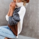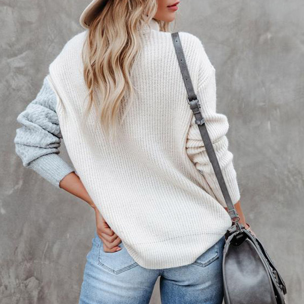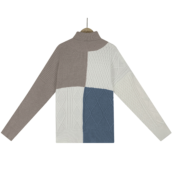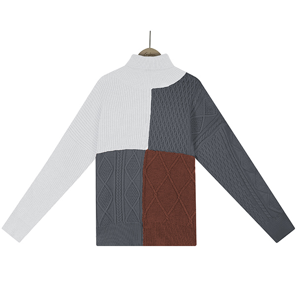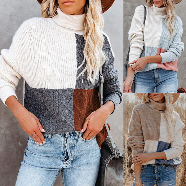 This fashionable sweater is perfect for a cool, autumn and winter day! The contrast colors are eye-catching and unique, and the turtleneck provides warmth and style. The long sleeves are perfect for layering, and the knitted fabric is soft and comfortable. This sweater is sure to become a favorite in your wardrobe!