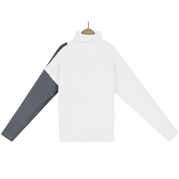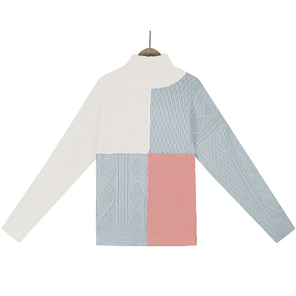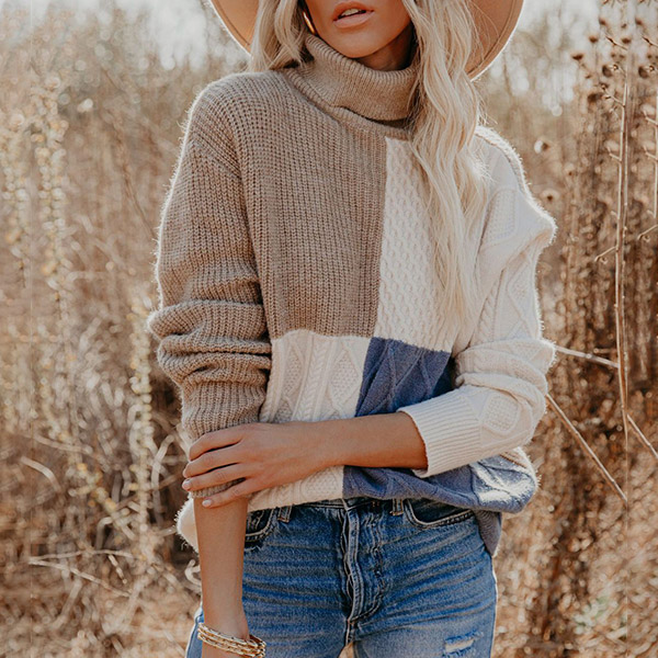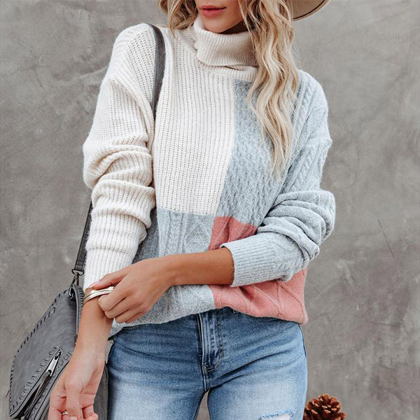 Fashion Contrast Color Turtleneck Long Sleeve Knitted Sweater